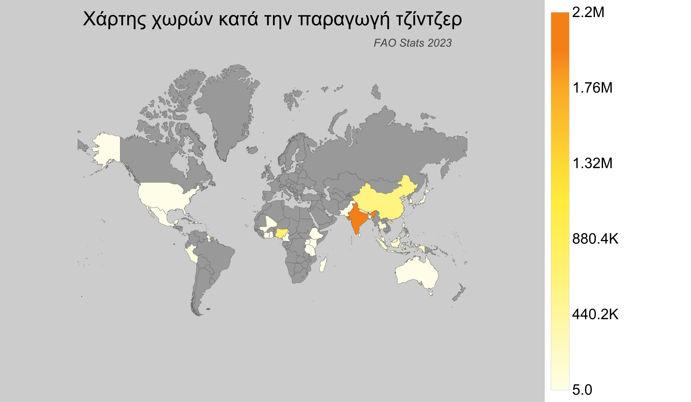 - Η Ελλάδα δεν έχει αναγνωρισθεί από τον FAO ως παραγωγός τζίντζερ.