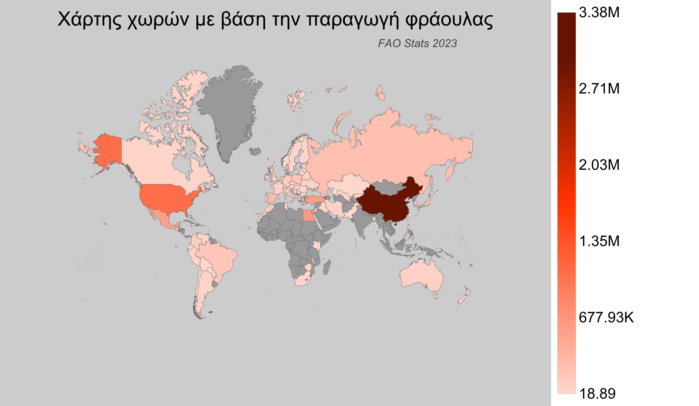 - Κίνα: Παράγοντας περίπου 3.4 εκατομμύρια τόνους, η Κίνα διατηρεί την κορυφαία θέση στην παγκόσμια παραγωγή φράουλας.